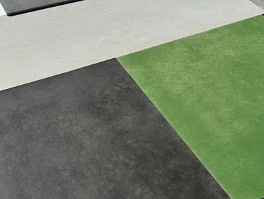 Substrate: 9mm Compressed Fiber Cement - Natural raw exposed concrete look.